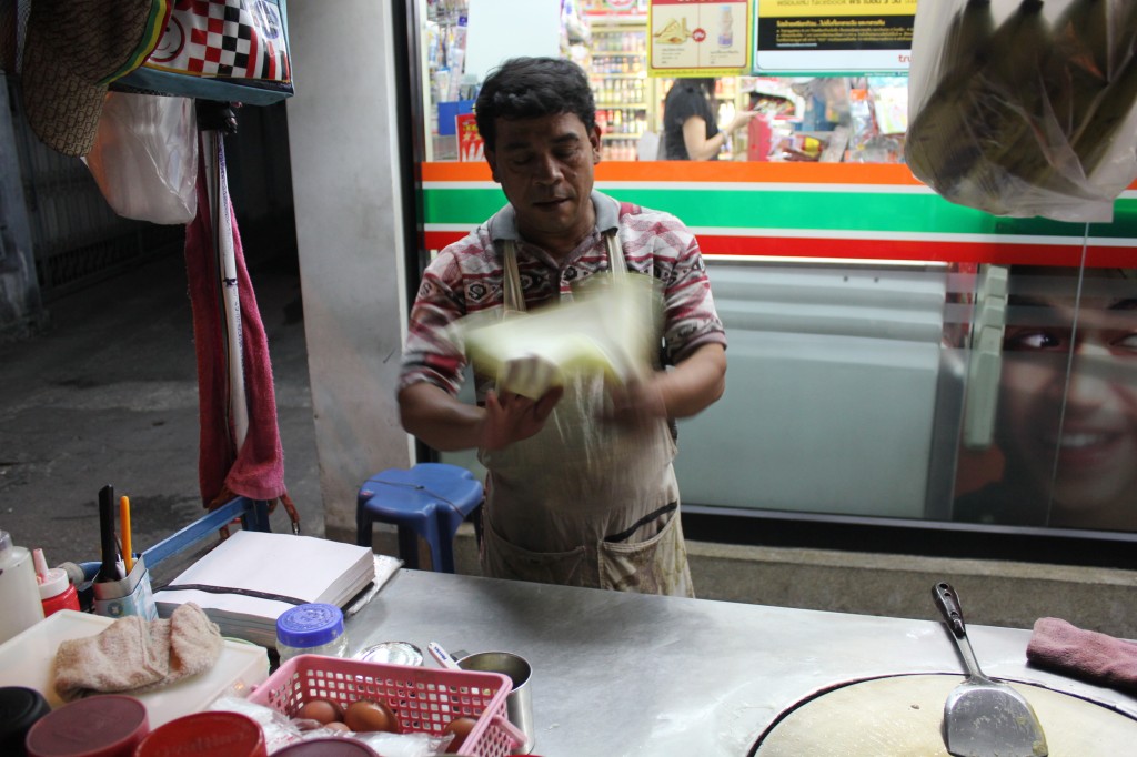 Let's call this man "banana pancake man". He satisfied our needs for this delectible dessert. I don't remember how many of these I ate while in the North. I do remember being very sad to not find them in the South.