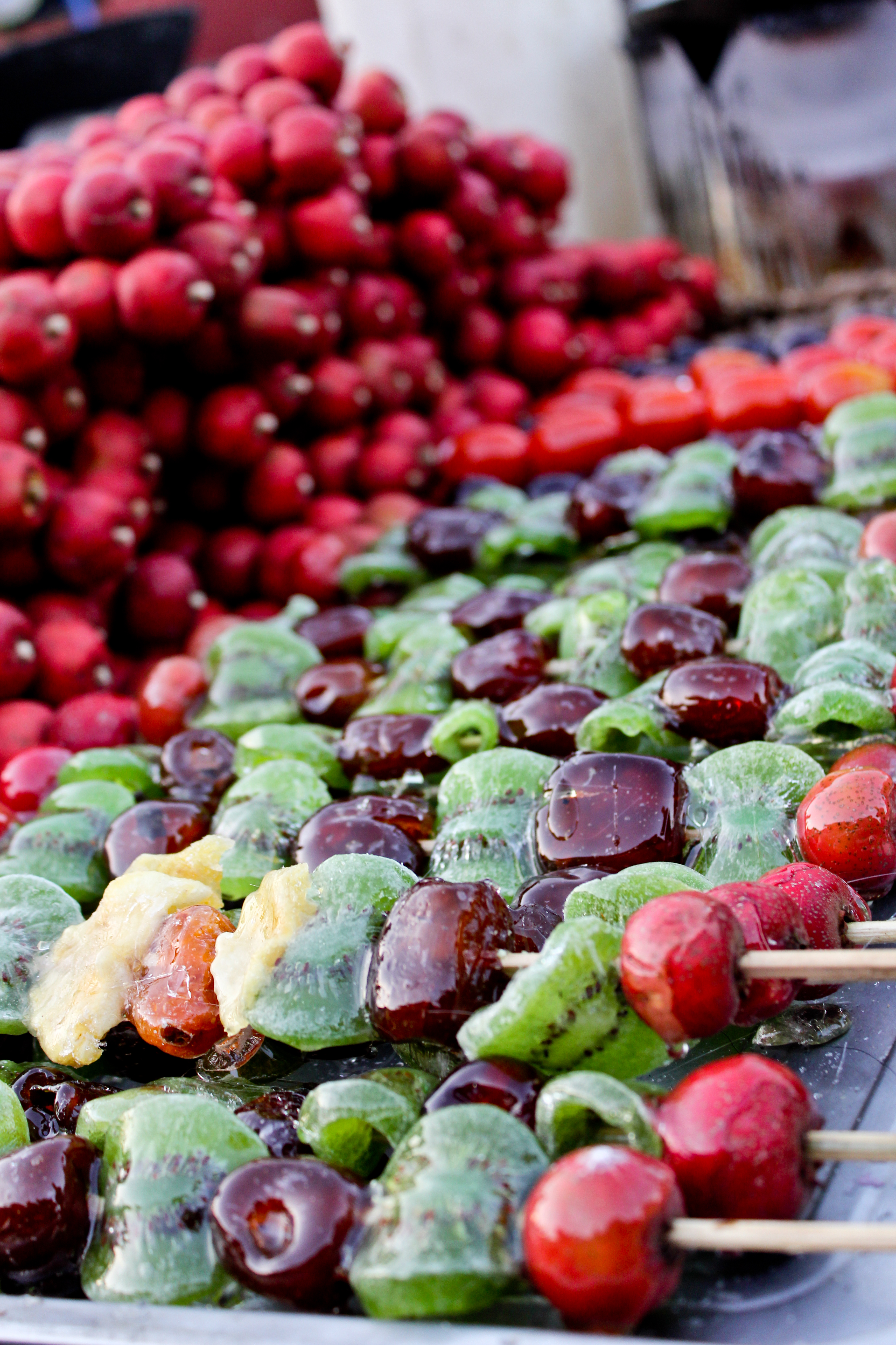 Fruit on a stick…covered in sugar…not very good.