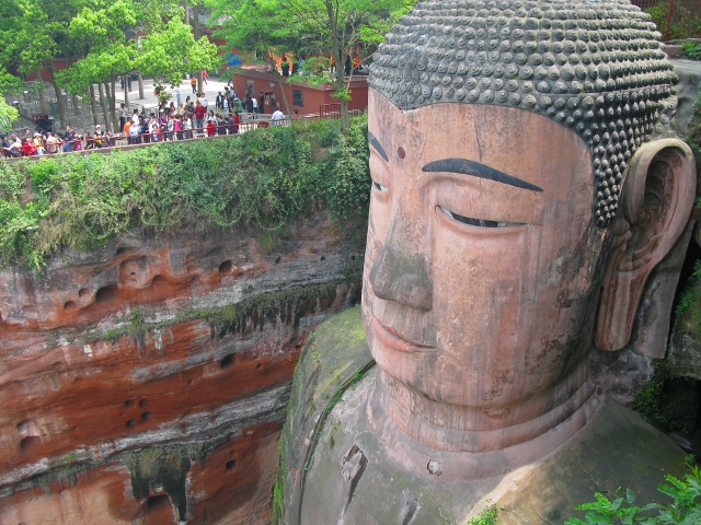 Le Shan Giant Buddha - he was carved right in the mountain. If you look closely at the top of the picture you can see people to get a size comparison.