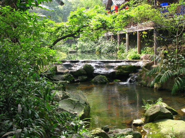From Le Shan we headed to Emeishan which was about 40 minutes away by bus.  Emeishan was also very beautiful.  When we got off the bus we were bombarded by people trying to sell us tickets back to Chengdu.  This was incredibly hilarious and my roommate, who’s Chinese is much better than mine, was having fun talking to all the people.  We decided to just wander around for a while and then catch a bus later on.  We found our way down a little river walk.  It was lovely. 🙂