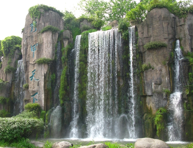 I’ll compare China and America once again.  Think back to the crazy New Year’s fireworks.  Chinese fireworks were crazy-huge and out of control.  The Chinese definitely know how to do things in large quantities (I mean, come on, 20% of the world’s population lives here–large quantity? Yes.)  But I would take an American firework show any day simply because it is more beautiful.  Then there’s this fountain show.  Quantity? Yes, for sure! It was huge and crazy.  Quality? It was good, but I’ve seen better.  The most entertaining part of this was watching the young men gang up on their buddies and drag them out into the water.  That, and the little girl who was behind me posing for her father’s pictures.  I’m not actually sure which one (the girl or the father) wanted her to be out there…