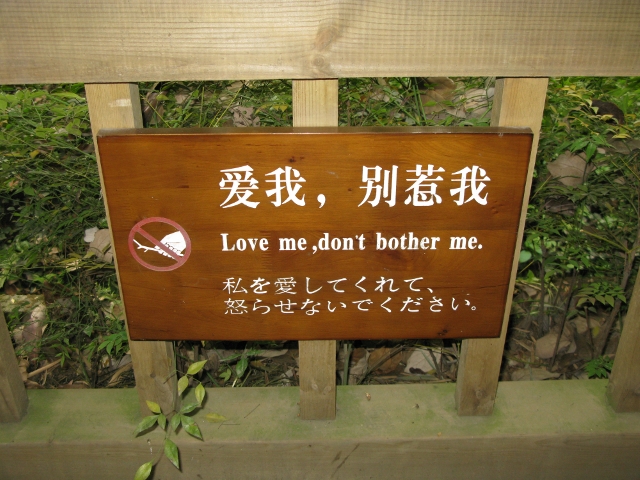 "Love me, don't bother me" This was at the panda breeding and research center. 🙂
