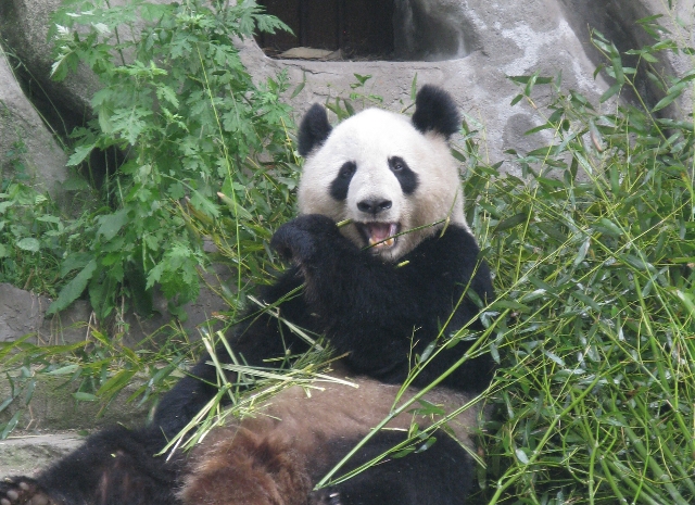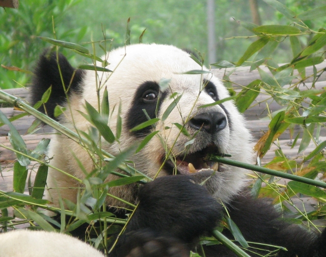 Mmmmm.... Wouldn't you love to munch on bamboo all day long? I guess if it was in a pile right next to you and you didn't have to move to get it you might! 🙂