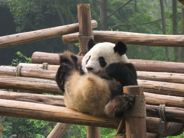 The next morning we found ourselves on a minibus with a woman from Australia.  It was the three of us and this woman.  We don’t actually know who she was talking to but we do know that she wouldn’t stop talking.  Thankfully, the ride was only about 40 minutes or so.  We arrived at the Giant Panda breeding and research center.  Our minibus driver was also the one who ‘led’ us through the center.  It was very beautiful there and taking pictures of the pandas was addicting.  They were so cuddly looking.