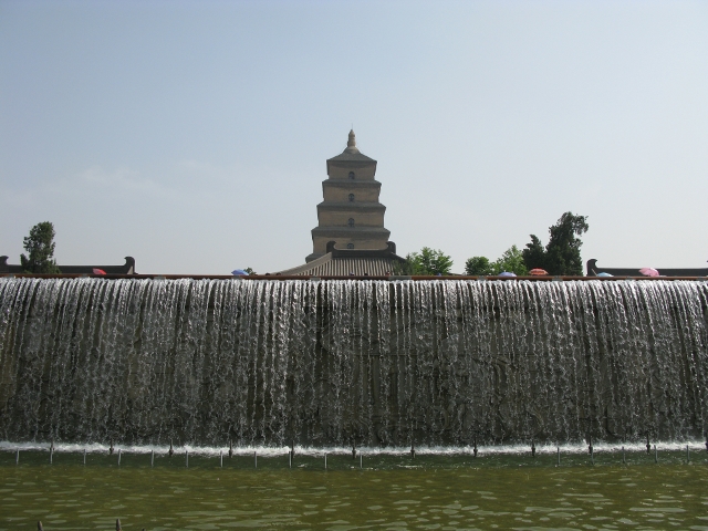 Michael then drove us to a completely different part of town to see the Giant Wild Goose Pagoda (I love the names for things) and these really awesome fountains!  The fountains were set to music and the show lasted about 20 minutes.  It was really cool.  I wish we could have seen it at night.  They were especially nice to stand near because the temperature in Xi’an got to 97.7 that day! Whoa!  It wasn’t even that warm in Chengdu, which is further south.
