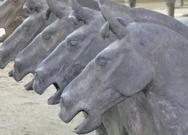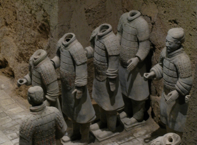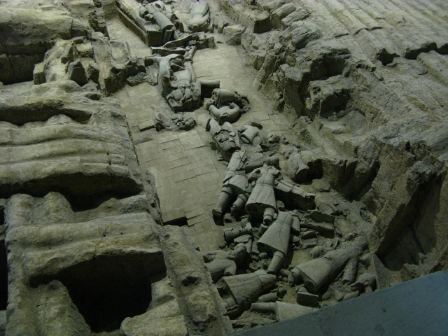 The next morning we got up to head to see the terracotta warriors.  Michael picked us up in his dad’s SUV (not his typical red Beetle) because he thought it would be more comfortable for the long ride. We made it to the location of the terracotta army and it was a madhouse.  There were people everywhere!  This was definitely not the time to be at this particular tourist location.  We zoomed through the museum part and also through the warrior part.  It was neat to see the pieces but this wasn’t my favorite place to visit.  I know people say that not visiting the terracotta warriors when you are in Xi’an is like not going to the Great Wall when you are in Beijing.  I felt obligated to go.  I took a few photos but all in all it was ‘just so-so’. 🙂  Below are some photos.