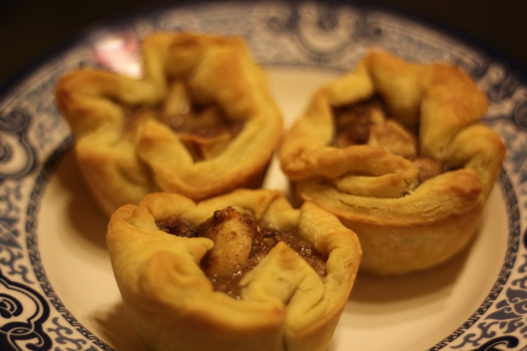 A little side note about extra pie crust: Sometimes there’s a little bit leftover when you roll it out, etc., etc… I want to share with you my mini-muffin-sized-apple pies. 🙂 They were equally delicious.