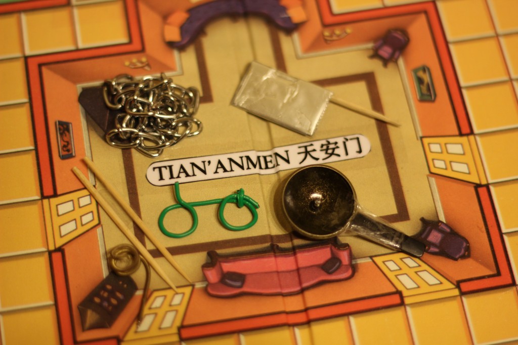 These are some of the miniatures I created for the Beijing version of Clue. The weapons were chopsticks, a wok, a cleaver, a bike chain, Micah's guitar string, and Teri's cat. I changed the room names too. 🙂 And the suspects 🙂