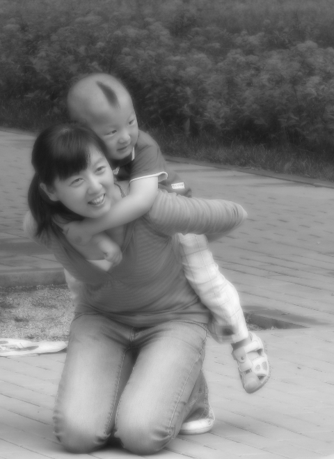 Yesterday was Children's Day in China. This means that the Children don't have school and that every tourist place is packed with people! This family was all wearing the same color. Too bad the black and white version was better picture. You'll just have to use your imagination.